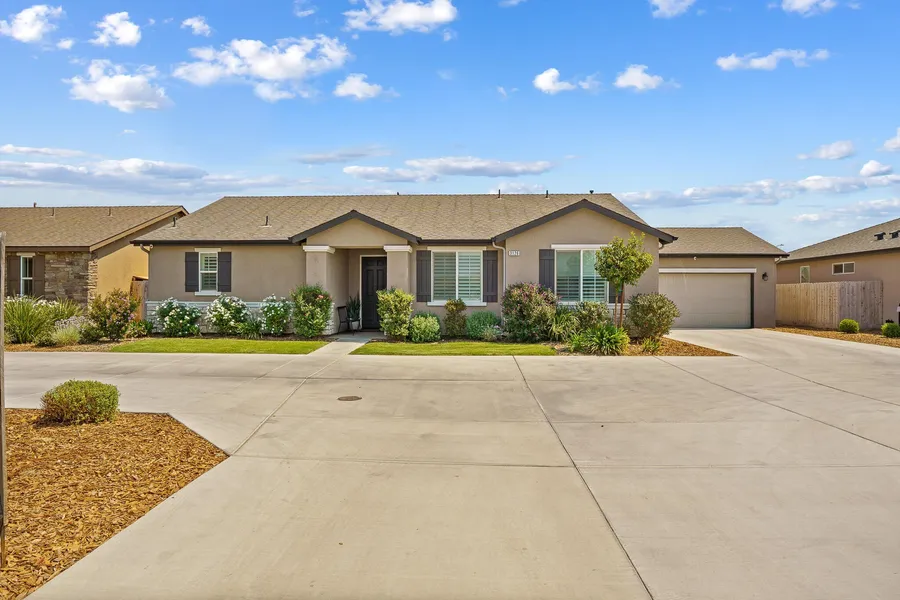 Welcome to this well-designed 3-bedroom, 2-bath home featuring a desirable split-wing floor plan and thoughtful upgrades throughout. Plantation shutters add a touch of style and function, while the open living area makes everyday living and entertaining seamless. The kitchen is highlighted by granite countertops, a breakfast bar, and a cozy nook, all open to the living room for easy entertaining. An indoor laundry room adds convenience, and the two guest bedrooms share a full bath, providing comfortable accommodations. The primary suite is a true highlight, offering a large walk-in closet, dual sinks, and a step-in shower. Outdoors, you'll enjoy a covered patio and a grassy yard-perfect for kids, pets, or gatherings. A 2-car attached garage rounds out the property with plenty of storage and parking. Located in NE Tulare within the highly desired Liberty school district, this home is ready for its next owners to make lasting memories.