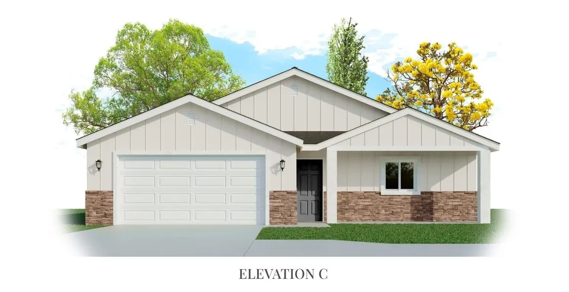 Welcome to the beautiful 'Willow' floor plan (Elevation C) - a thoughtfully designed 3-bedroom, 2-bath home offering 1,386 sq. ft. of modern comfort. Inside, you'll find stylish upgrades including quartz countertops, stainless steel appliances, and generous storage space throughout. The owner's suite features a walk-in closet, single vanity, and a shower/tub combo - perfect for everyday ease. Enjoy a low-maintenance, eco-friendly front yard with artificial turf, water-wise shrubs, and a drip irrigation system. Additional highlights include a Google Nest thermostat and flexible solar options (lease or purchase) to help lower utility costs. Located near major transportation routes for easy access to surrounding cities - this home is where comfort meets convenience.