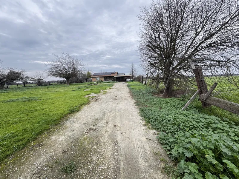 Welcome to this unique rural 3-bedroom, 3-bath home situated on a spacious 1-acre lot. The inviting layout begins with a living room and dining area upon entry, offering a warm and functional flow. Just off the dining room, the kitchen is easily accessible, while an adjacent hallway features built-in cabinetry, a laundry area, and a private bedroom with its own full bathroomideal for guests or multigenerational living. The home continues into a second living or TV room complete with an additional kitchen and cozy dining area, creating excellent flexibility for extended family or dual-living potential. A sliding glass door off this space leads to a sunroom or storage area with direct access to the backyard. To the left of the second living area is a spacious bedroom suite featuring three closets and a full bathroom. An additional hallway with built-in cabinetry connects to the third bedroom and main full bathroom and conveniently loops back through an archway to the original living and dining areas. With multiple living spaces, thoughtful storage, and room to enjoy the outdoors, this property offers versatility and comfort in a peaceful rural setting. Home has solar on roof.
