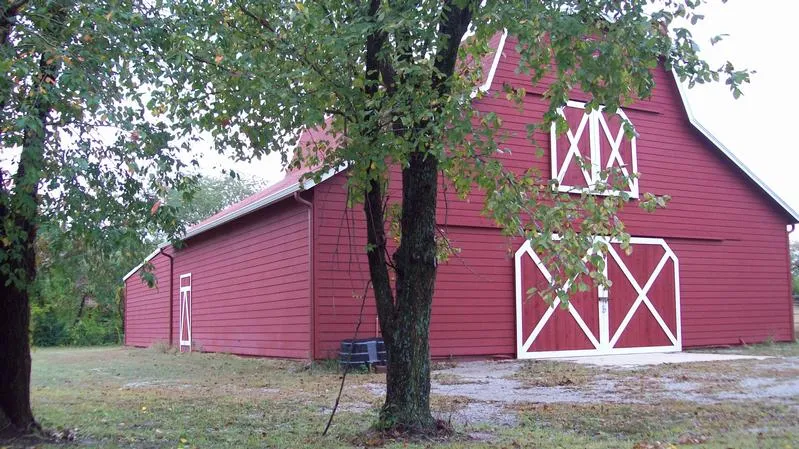 Beautiful 5 acre home site in Broken Arrow! Big red barn in back. Fully fenced. Trees spaced apart for park like setting.