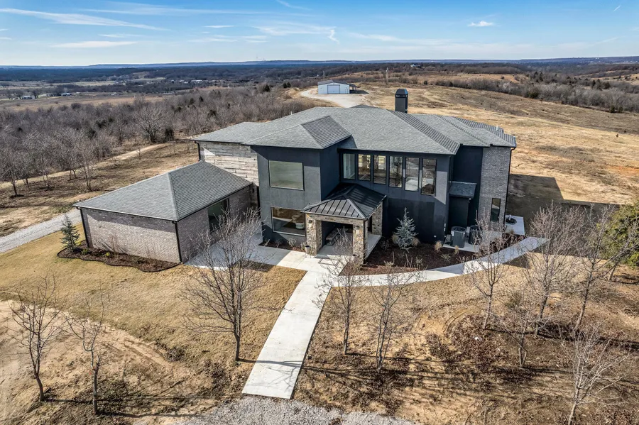 Home includes gourmet baker's prep kitchen plus entertainment kitchen each having its own sinks, dishwashers, and ovens. CAFE brand appliances, large island, walk-in large pantry, dry bar, & huge windows with stunning picturesque views. Large theatre/game room downstairs. Full bath with dog shower & laundry off exterior side door. Main living room includes soaring ceiling with floor-to-ceiling windows & massive stone fireplace. Guest bedroom or spacious office down with full bath, fireplace, walk-in closet & private covered porch. Massive primary bedroom up w/ fireplace, wal...