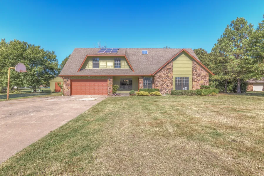 WOW! Fabulous and Trendy Remodel on 1+ Acre in Jenks Schools! This roomy 6 bed, 4 bath, family home features 2 large master suites (one up, one down); granite counters throughout; all new plumbing, HVAC, siding/trim, interior and exterior paint, flooring, appliances, fixtures, and lots more! Brand new luxurious bathrooms are to die for! Ideal kitchen w/ tons of storage! Excellent outdoor living space with 2 sheds and a 2 level balcony/deck with beautiful views! Flexible floor plan -- HUGE master closet upstairs could be used as nursery, one bedroom with private entrance could be used as home office. Shiplap in living room, need I say more! This is a MUST SEE home that will not last long!