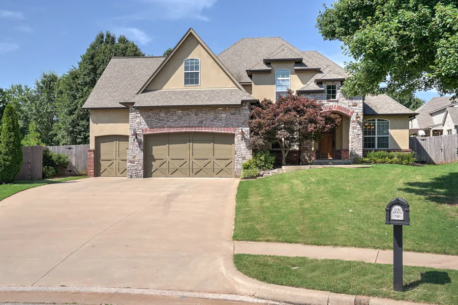 Beautiful Bixby North 5 bedroom, 4 full bath home sitting on .3 acres in a cul-de-sac. Granite kitchen, new stainless appliances, walk-in Pantry & oversized Island, opens to lg. living with stacked stone FB w/built-ins. Downstairs: Owner's Suite, Guest Bed w/full bath, Office, Formal Dining w/Butler's pantry. Upstairs: Huge Game room, Hobby room plus 3 large bedrooms w/walk-in closets & 2 Full Baths. Beautiful hardwoods, tile and new carpeting throughout. Close to Neighborhood Pool, Park & Playground.