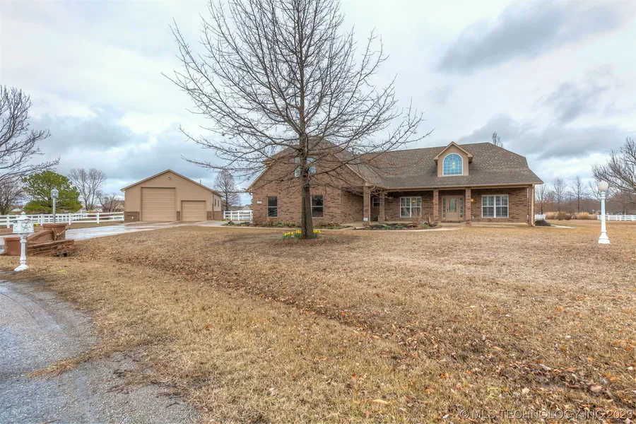 Custom Home on 2 acres! Side entry 2 car garage. 30x50 heated shop. The living room has a Heatilator fireplace with a vaulted ceiling. Formal dining. 3 bedrooms are located on the first floor. 4th bedroom is up. Gameroom, craft room, and office are located upstairs. Sunroom located off Primary Bedroom. Rear entry stairs.Cul de sac lot. The seller will leave riding the lawn mover and safe. The shop is plumbed for a bathroom. The master closet is also a safe room. Home security for home and shop. Large covered back porch with amazing views! New exterior paint. Horses allowed!