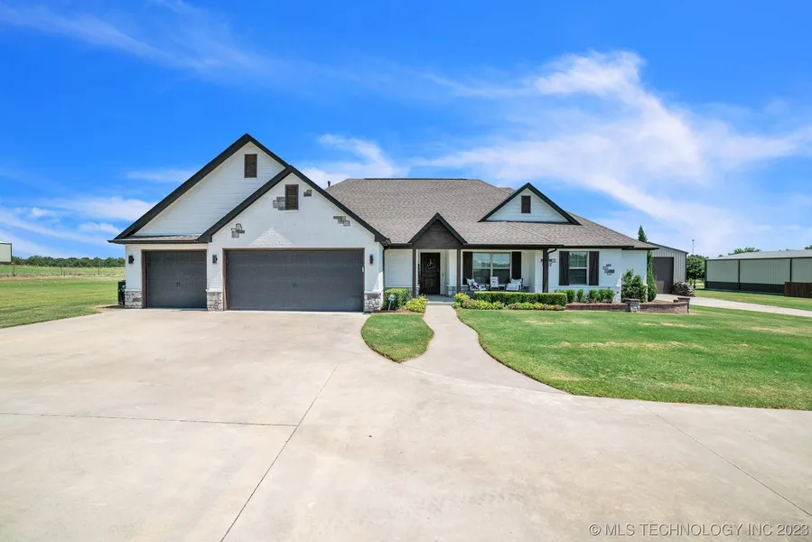 This 3 bedroom 2.5 bath has an office plus a gameroom that could be 4th bedroom! 3 car garage with safe room inside. Beautiful hand scraped hardwood floors throughout living spaces, office and master bedroom. Surround sound in living, master and master bath and back patio. Huge island with extra storage! Stainless appliances. Outdoor fireplace plus an outdoor grill. 30x40 shop with door run fenced in area.