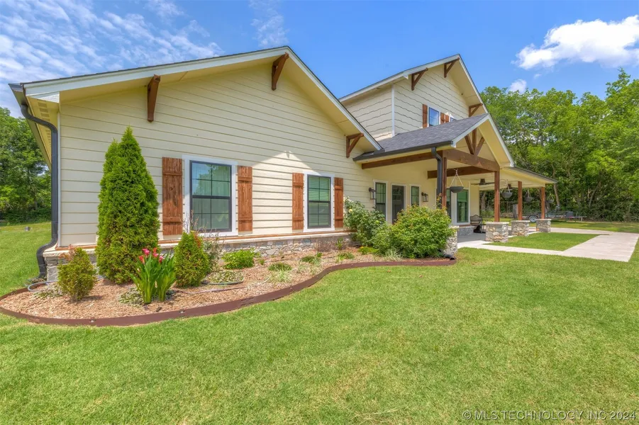 Custom-built home on 3/4 acre M/L. Large wrap-around front porch with beautiful views front and back! Side two-car garage. Office and Formal dining. Large massive living area with corner fireplace. Chief kitchen with walk-in pantry. Oversized island. Double ovens. Instant pot filler. Central vacuum. Large spacious game room with 3 bedrooms and full bath. Foam insulation. Luxury vinyl floors. Built-in wine bar in kitchen. Alarm system. Luxury master bath. Double sinks with separate make-up vanity. Double Jacuzzi tub. Walk-in shower with dual heads. The massive master closet has two built-in dressers.