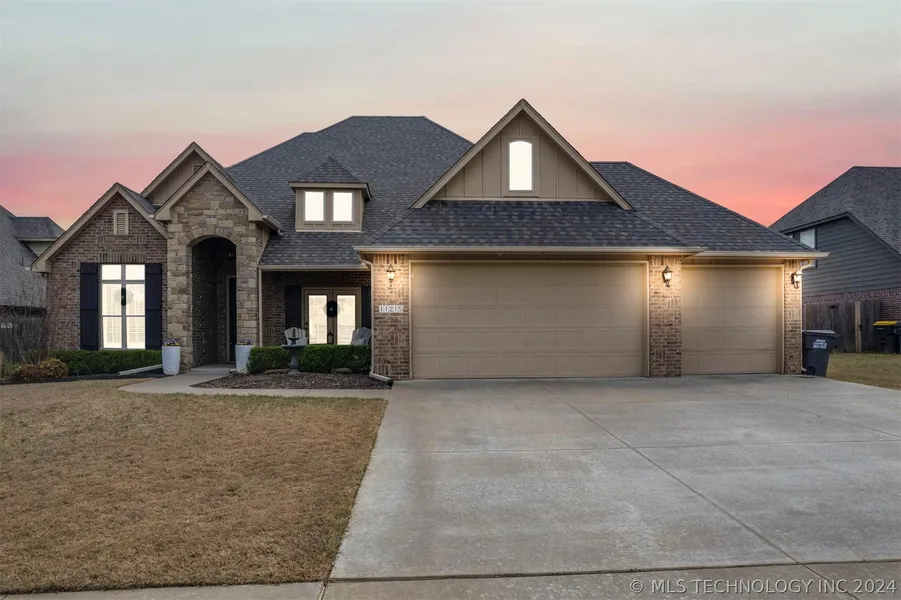 Step into luxury living in this exquisite home nestled within a gated community in the prestigious Jenks school district. With four spacious bedrooms, three and a half lavish bathrooms, and a three-car garage, this residence epitomizes sophistication. The open-plan kitchen features a stylish island and granite countertops, seamlessly flowing into two living areas. Outside, an extended covered patio invites al fresco dining and relaxation. Immerse yourself in the surround sound system and experience the timeless beauty of this masterpiece firsthand. Schedule your viewing today and be captivated by this beautiful home.