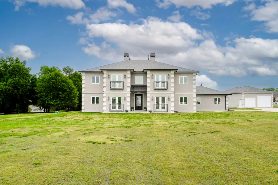 A special view of home! This thoughtfully built custom home sits on 2.21 acres in the Blue Springs community. The 5426 sqft home packs a punch with 5 bedrooms, each with private en suite full bathrooms. Wonderful views and natural light greet you from every room in the house, from the main living area with floor to ceiling thermal windows, through to the primary bedroom, with bathroom that boasts a custom designed onyx shower with granite detailing, and freestanding antique brass clawfoot bathtub. The main entrance features a beautiful staircase and two offices on either side of the front door. Sealed cement floors throughout the first floor, and white oak hard wood floors on the second floor make indoor/outdoor upkeep a breeze. Also notable is the additional 2800 sqft shop, complete with full electric, ready with garage lift doors, also suited for equipment, extra cars or toys, or finish it out with a stable for a beloved horse. Back inside the home you’ll also find a hobby/artist room, tv/flex room, home gym room, and spacious bonus room with wet-bar complete with beverage fridge and microwave. And of course you can’t miss the open kitchen with large island, granite countertops, and Frigidaire Professional Series and Viking appliances. An outdoor pet run next to the house can be converted to a well established chicken coop, and the peaceful backyard with large open patio and hot tub is prepped to make it your own.