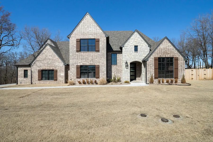 Beautiful new construction home on 1/2 acre lot in Flint Hills! Enjoy a quiet, country-like setting with the nearby conveniences of city life! Home was completed in 2024 and has premium finishes such as custom-built cabinets, stone fireplace, beautiful hardwoods, granite, spray-foam insulation, 16 SEER A/C, 95% efficient furnace, real wood blinds and sprinkler system. Enjoy the luxury of a study/game room/theater room/2nd Suite with bar area downstairs and a private office/sitting room along with the peaceful serenity of a beautiful A-frame patio overlooking mature trees. Spacious primary suite has separate bathroom vanities, soaking tub and ample space in the primary closet. Take advantage of a new construction home without the wait of build time! MOVE-IN Ready!