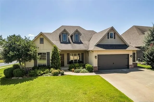 This gorgeous CORNER LOT home in a GATED COMMUNITY in Jenks schools district offers 3,073 sf (per Courthouse) with 4 bedrooms, 3 full baths, and a smart functional layout. You'll love that 3 of the bedrooms are downstairs, including the primary, so it's great for families or guests. Inside, hardwood floors add warmth and style, and there's a dedicated office if you work from home or just need a quiet spot. Upstairs, there's a bedroom and full bath and the game room is ready for movie nights, playtime, or just hanging out. Located in a gated neighborhood with walking trails and a community park. It's a great mix of space, comfort, and location all in a neighborhood you'll love coming home to!