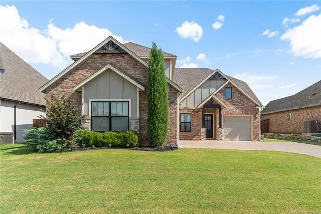 Stop. Collaborate. And Look—built in 2019, this South Broken Arrow brick home blends modern style with moody elegance. The living, dining, and kitchen space is open, functional, and inviting for gatherings, entertaining, and connecting with friends and family. Hardwood floors, leathered granite, storage galore, and custom touches throughout including crown molding, drop zone from the garage, and spacious laundry area with closet. All bedrooms are on the larger side with walk in closets along with flexible floorplan that gives plenty of options to customize. Designated office at the front of the house could easily be a 4th bedroom if desired. Side-entry 2-car garage + 3rd car garage bay with separate entry. And don’t miss the neighborhood pool and close proximity to new shopping areas and the Creek turnpike which brings plenty of convenience. Set up your showing today!