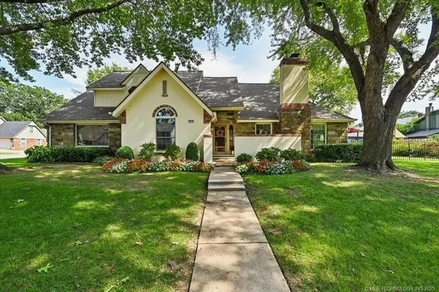 Nestled on a large corner lot with lush, mature landscaping, this exceptional home offers the perfect blend of warmth, character, and modern comfort. As you step inside, rich wood floors set an inviting tone, leading you into a spacious formal living room featuring vaulted ceilings with beams and a cozy gas fireplace framed by a brick hearth. The updated kitchen is a true standout with stylish quartz countertops, newer appliances, and newer LED lighting, which seamlessly flows into the family room. Here, a striking floor-to-ceiling stone fireplace creates the perfect centerpiece for gatherings. A spacious dining room, accented with handsome wood beams and complete with a wet bar, makes entertaining effortless. The primary suite is a retreat of its own, boasting abundant built-ins, a generous walk-in closet, dual vanities, a large jetted tub, and a separate shower. Throughout the home, newer Anderson windows flood the rooms with natural light, enhancing the warm and welcoming atmosphere. Additional updates provide peace of mind, including a new downstairs HVAC system, a new hot water tank, and a new roof. With its combination of thoughtful updates, timeless architectural details, and move-in-ready condition, this home truly has it all.