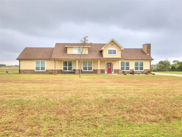 Experience country living with refined comfort on 2.18± acres in this thoughtfully designed 2017 custom home. A full-length covered front porch welcomes you into a spacious 4-bedroom, 3.5-bath layout with an open concept design and elevated finishes throughout. The gourmet kitchen is equipped with granite countertops, double ovens, stainless steel appliances, two sinks, and a large walk-in pantry, providing exceptional workspace and storage. Two full primary suites, each with whirlpool tubs and private en-suite baths; one includes an updated tile walk-in shower—an ideal setup for multi-generational living or extended-stay guests. A generous upstairs game room adds flexible living, media, or recreation options. Additional interior features include a mudroom and two connecting, oversized in-home safe room/storm shelters for enhanced safety.