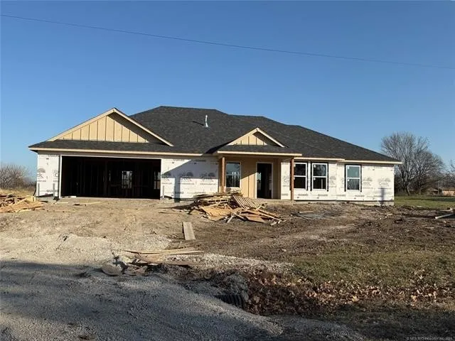 FULL BATH/ 2 CAR OVERSIZED GARAGE. Must see modern living space with an open, split-bedroom set up! The kitchen is the heart of the home, featuring a large island, walk-in pantry, and plenty of cabinet space, perfect for entertaining and everyday living. The private primary suite boasts double sinks, a walk-in shower, and a separate water closet for added privacy. Enjoy peaceful outdoor living on the covered back patio with room to roam, garden, or build your dream shop on this oversized 1.11 +/-acre lot. Located in the highly desired Owasso School District with the privacy of country living and the convenience of town shopping & restaurants nearby this