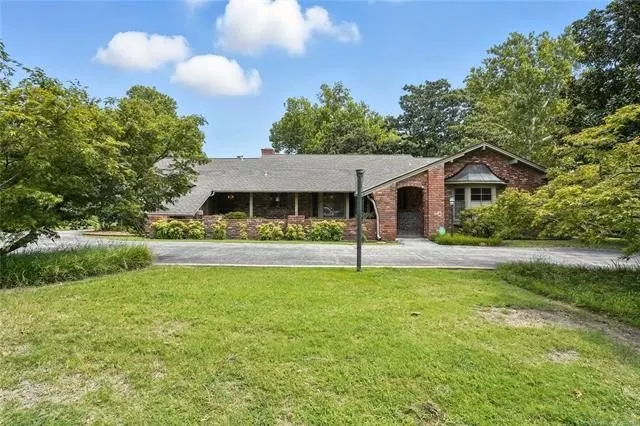 Discover the timeless appeal of Ranch Acres with this mid-century gem, rich in character and design. This single-story home welcomes you with a circular drive and a rear-entry garage, creating both convenience and curb appeal. A charming gated courtyard sets the tone before you step inside, where two spacious living rooms and both formal and informal dining areas offer flexibility for everyday living and entertaining. With four bedrooms and three full baths plus one half, the layout provides both comfort and functionality. Outside, mature trees frame a park-like backyard on an expansive lot, offering a serene setting rarely found in the heart of the city.