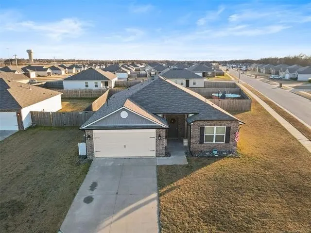 Come see this like new 2020 built 4-bedroom, 2 bath home on large corner lot in Abbott Farms! Great location near highways and all of the shopping and dining options of Owasso, plus the Owasso sports park is right next door. Fantastic Owasso schools, including the one and only Bailey Elementary. The exterior features a mixture of brick and hardie plank siding for low maintenance, as well as a full privacy fence and large back patio. The interior has the space you need with 4 bedrooms, including a large primary suite with private bath and walk in closet. The living room features vaulted 9 ft ceilings and cozy gas fireplace. If you want a home you can relax in and enjoy now and not spend your weekends fixing up, this is the one for you. Come make it yours!