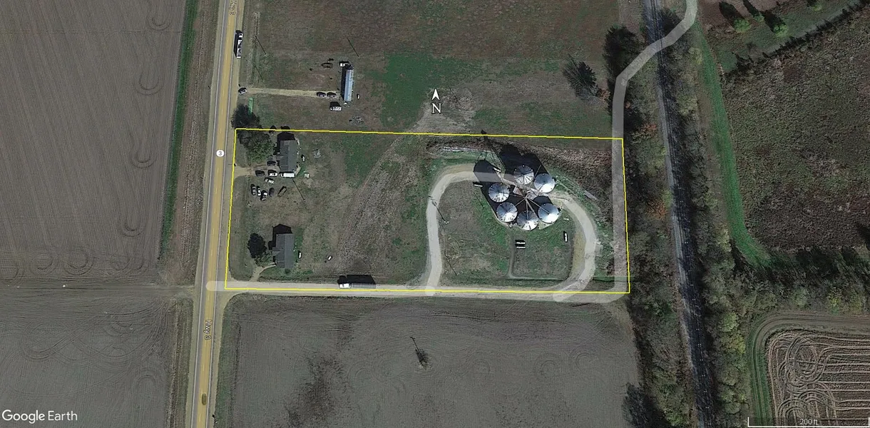 Property consists of approx. 4.8 ac with frontage on Ms Hwy3. Improvements include 6 grain Bins constructed in 1962. each bin has a capacity of 20 bushels. This property has access to adjoining railroad.In addition to the grain bins ,there are 2 rental houses that are occupied.