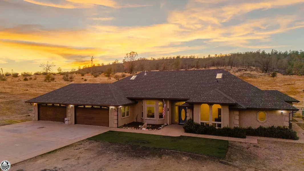 EXPANSIVE & ELEGANT home in the Rawhide Valley situated on just under 40 acres of mineral rich grounds. This gentle rolling property offers a clean slate template for future expansion and is enhanced with Bear Creek at the Southerly corner. A bold interior offers high ceilings, wide hallways and ample natural light. The formal entry opens into the main living area which features a wet bar and fireplace. Overlooking the living room is a gourmet kitchen with granite counters, dual ovens,new built-in stainless steel appliances, island, pantry and ample cabinetry space. Entertain with ease here with the spacious formal dining room and breakfast nook. Ample sleeping quarters offer a main primary bedroom with dual sinks, soaking tub, stall shower and 2 walk-in closets. A secondary suite is complete with a walk-in closet, soaking tub and stall shower as well. Two additional guest rooms are generous in size each with deep closets and easy access to the hall bathroom with a stall shower and skylight. Finishing off the home is a front den ideal for an office or sitting room and the indoor laundry complete with a wash tub. Parking is plentiful here with a spacious 4-car finished interior garage and open concrete parking pad. As you explore the grounds you will find remnants from the old mining days, views to New Melones Lake and trails upon trails of natural beauty. Living here provides you the opportunity to enjoy the Gold Country with the many natural lakes and forest lands, national parks and iconic Table Mountain trail all at your backdoor.