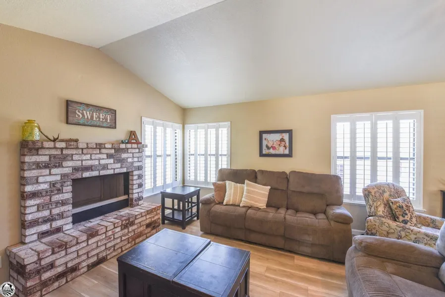 Step into this charming home, nestled in a prime location and built in 1988. Enjoy almost half an acre of usable fenced, level yard. Inside, discover 3 bedrooms and 2 bathrooms spread across 1488 square feet of living space. The open concept living room features a cozy brick wood-burning fireplace and flows seamlessly into the dining room. Prepare delicious meals in the newly remodeled kitchen, boasting custom soft-close cabinets, elegant quartz countertops, and modern electric appliances. Throughout the home, you'll find beautiful new waterproof vinyl plank flooring and stylish plantation shutters, adding a touch of sophistication. Stay comfortable year-round with the newer HVAC system and enjoy the benefits of solar energy, with the seller taking care of the remaining balance at closing. Escape to your private oasis on the large deck, accessible from both the living room and primary bedroom. An added bonus room beneath the house, complete with heating, a milled wood ceiling, and recessed lighting, provides a versatile space for hobbies, storage, or even a home office. Convenience is at your fingertips, with easy access to shopping, hospitals, schools, and medical services. Don't miss out on this home – call today to schedule your private showing!