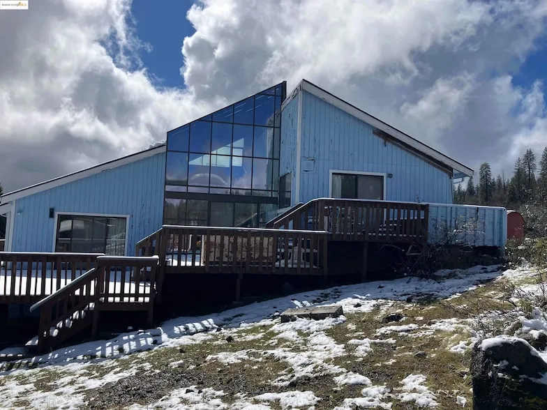 Two Houses on 2.24 mountain acres with big views! This fixer-upper has so much potential. The main home offers 3 spacious bedrooms, 3 full baths with a huge living room/great room with an extra tall Knotty Pine open beam ceiling, a glass roofed dining room, and a tile kitchen with the laundry room at it's side. There is a very large deck with a smaller, hot tub deck and flat paved parking area with a fenced garden remnant and another concrete pad just awaiting to build a garage. The guest house is a level entry 2 bedroom, 1 1/2 bath with the kitchen, large living room with a kerosine heater. This space needs some flooring and kitchen finishing. It has a nice wooden overhang to create a private patio area and level parking enough for 2 to 3 cars. There's a really cool downstairs space that could be turned into a studio apartment for even more rental income. The property is open with mountain views to the south. It's got a country vibe and is just a few minutes from the vacation destination town of Twain Harte. Close to Black Oak Casino in Tuolumne. It's about 2 1/2 hours to most Bay Area locations. Near to Pine Crest Lake and Yosemite National Park.