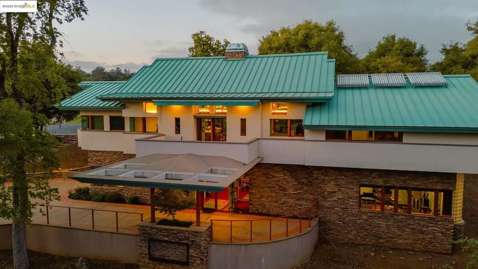 Fly home to this stunning airport taxiway residence, where luxury meets aviation! Taxi to your private 40 x60 hangar, with bath, above a six-car garage. The eco-friendly architect-designed home has clean modern lines and a Frank Lloyd Wright vibe. Enjoy open-concept living with soaring vaulted ceilings, dual-facing fireplaces, and panoramic views. Balconies on four sides of the home expose the beauty of the 1.6-acre parcel. A well-equipped chef s kitchen seamlessly connects the dining and living areas. The 3,615 sq. ft. home offers comfort and privacy with four private bedrooms thoughtfully separated across two floors, plus a large home office. Three sophisticated full baths have showers and tubs, with two featuring spa-like jetted tubs. A half-bath in the great room is for guests. The durable standing seam metal roof ensures longevity. Nestled in Pine Mountain Lake (PML), a private gat...