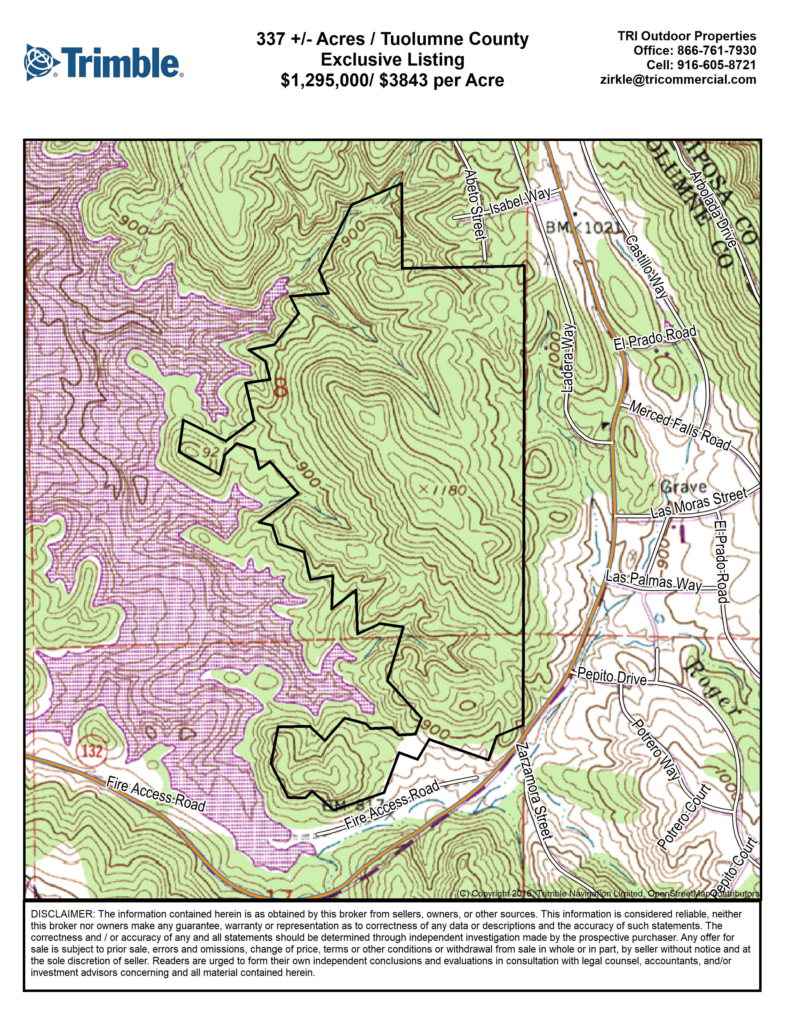 Research Parcel InformationFrom Modesto at State Hwy 99, proceed east on State Hwy 132 approximately 42 miles to property main entrance located at intersection of Zarzamora Street. Entrance is gated and locked with a TRI Outdoor Properties For Sale sign.