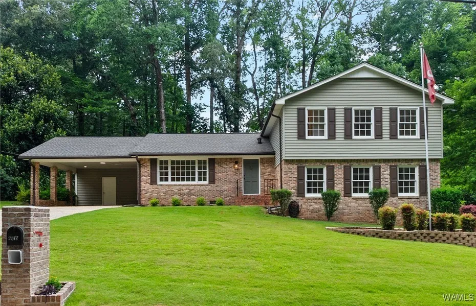 All Brick and totally renovated. Entire home is freshly painted. New LPV flooring throughout living and dining room as well as all bedrooms and bathrooms. Kitchen has all new stainless appliances which includes refrigerator with original quarry tile flooring that has the charm of brick. This flooring is in the Den as well where family can gather around the wood burning brick fireplace. Total of 5 Bedrooms and 3 full baths have all new doors throughout the entire home. Master Bath and Guest Bath are renovated with decorative encased tile around both tubs, new vanity mirrors, lighting and new plumbing fixtures. New HVAC installed June 2024, along with the entire duct work being cleaned. Huge covered patio space right off the kitchen & multi-purpose room accessible from patio area.
