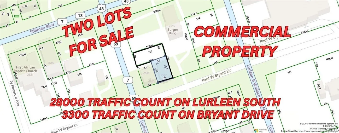 This property is being sold with the lot behind the property that has road frontage on Lurleen Wallace Blvd South. The house is in need of many repairs but could be remodeled with the right skill sets. The house was used as a Printing business for many years and has an apartment on the second floor of the house. The apartment has just been vacated last month. The property is zoned BC with the City of Tuscaloosa. The traffic count on Lurleen Wallace is 31000 per day and Bryant drive is 3000 per day. The owners of the property are Licenced Real Estate Agents