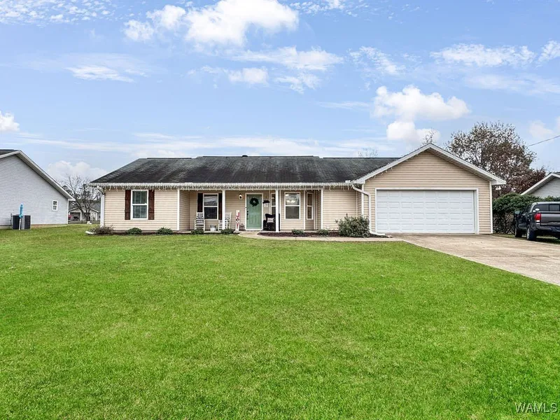 Charming 3-bed, 2-bath home in Vance with classic appeal and thoughtful upgrades. Enjoy a welcoming country-style front porch, a spacious back porch, and a large level lot great for outdoor living. Inside features include a split bedroom plan, cozy fireplace, and a kitchen with ample cabinets, counter space, pantry, and a generous eating area. The oversized primary suite adds comfort, and the HVAC was replaced this year for peace of mind. Easy-maintenance vinyl siding and a great layout make this home an excellent fit.