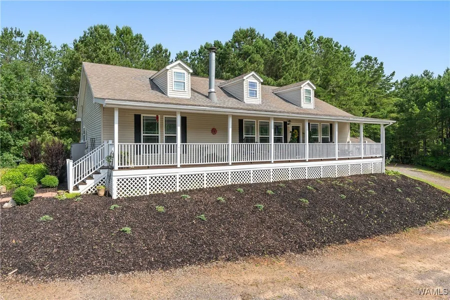 Nestled in the serene countryside in a quiet setting on nearly 12 Acres of tranquility and peace, this 3-bedroom, 2-bath MODULAR HOME waits for your arrival! Situated in a Gated Community, this meticulously crafted home boasts an open concept, split floor plan with LVP and laminate flooring throughout, a large living area featuring a wood-burning fireplace, 9-foot ceilings, recessed lighting, and crown molding throughout. Imagine yourself sitting on a covered front deck OVERLOOKING A STOCKED LAKE, drinking your morning coffee in a picturesque setting! Country kitchen with an island, tons of storage and cabinets, and a laundry room with cabinetry. Large Primary bedroom, an en-suite with separate shower and soaker tub, and double vanities. A storm shelter and storage building included. HVAC & Water Heater are only 2 yrs old; features a Culligan Water Softener System. Conveniently located between Tuscaloosa and Birmingham, Mercedes and its suppliers. HIDDEN TREASURE; MUST SEE!