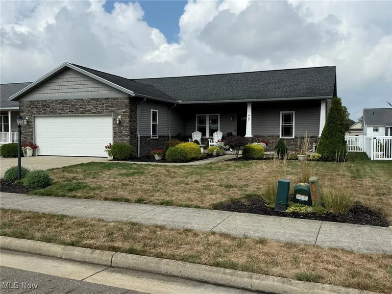 Immaculate stone and vinyl, 3 bedroom, 2 bath ranch home. Open floor plan with wood laminate flooring. Beautiful white kitchen features an island breakfast bar and includes the stainless steel appliances. Split bedroom layout with spacious master suite boasting a walk in closet and full bath. The master bath includes a tub and separate shower. Main floor laundry with utility sink. Sliding glass doors lead to the 14 X 16 vinyl rear deck with vinyl pergola. Enjoy a relaxing evening from the shaded deck overlooking the fence enclosed backyard. Quality 8 X 10 Weaver storage barn. Updates include new gas water heater (2023), pergola (2021), dishwasher (2022), microwave (2024), range (2023). 2 car attached garage with oversized driveway providing ample space for basketball hoop. Excellent South Side location in a charming neighborhood. Exclude exterior cameras. TV brackets stay.