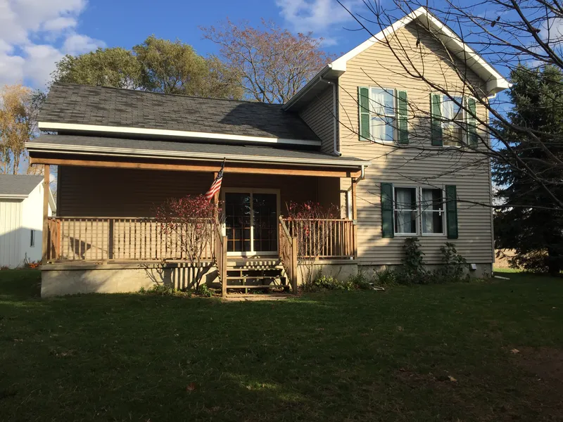 Living Room, kitchen/DR with hardwood floors, eat at breakfast bar and sliding doors to porch. Both bathrooms have ceramic flooring, great updated lighting fixtures. Beautiful maple cupboards with over counter lighting. Lazy susan and ceramic counter top. Ceiling fans throughout. Amish-Milled Pine Open Stairway to second story. Many updates including: newer drywall; newer insulation; water softener 2013; reverse osmosis 2013; well water tank bladder 201; fresh water sealant on basement walls 2014; hot water heater, electric 2015; new flooring in living room 2015; new security door 2015; new room, dimensional shingles, 30 year warranty, 2015; replaced front steps, 2016; power washed and sealed front porch 2016; septic tank pumped 2016; 3 large windows replaced with Pella windows 2017.