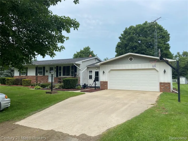 If you like quiet country living you will love this 5+acre hobby farm w/creek! This ranch features 3 beds & 1 bath, attached 2.5 garage w/ heated breezeway/mudroom. Hardwood flooring throughout the home, even under the carpet in the living area & hallway. The living room features a large picture window, giving lots of natural light. Eat-in kitchen w/ access to the back covered deck from the dining area. Take a trip to the basement and find a bonus family room, den, & workshop; not to mention the laundry room, utility, and storage areas. The family room features a wood-burning stove to offset the furnace and keep you cozy in the winter. Behind the home, youll find a pole barn w/4 matted stalls, hay room & fenced paddocks for your horses or livestock. You have another acre or so waiting for you behind the creek & a cement pad for a trailer. Wildlife abounds! Perfect for the nature-lover or Hunter. Owners report frequent deer, turkey plus Pear & Apple trees. 20 min to I-75. Home Warranty included