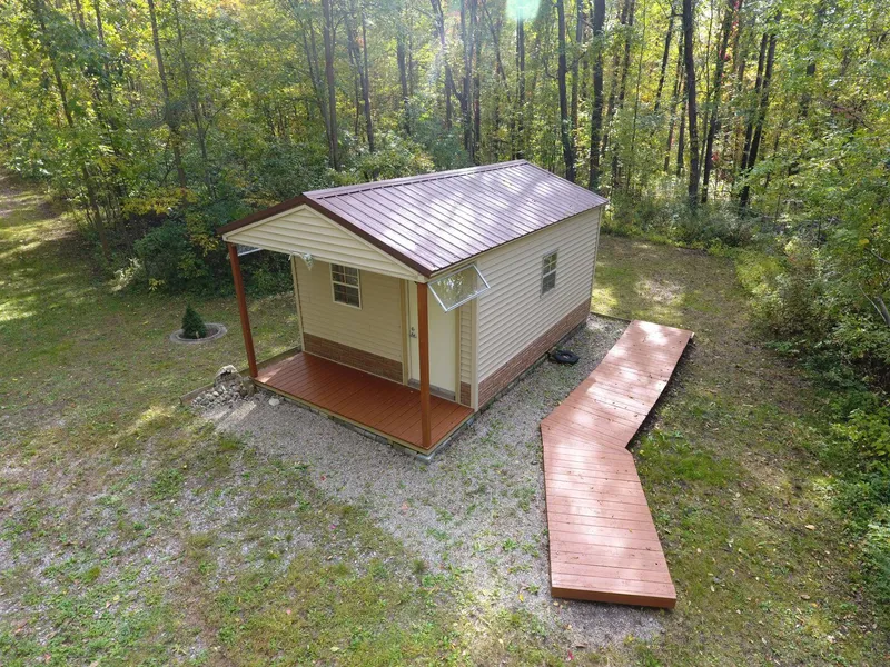 There are a couple campsites on the property. One out by the road with a fire pit and park benches. The gated gravel drive leads back to the second camp location. This one has a very nice 12 x 16 customized out building. Building has been nicely ...