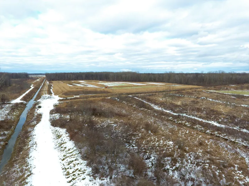 The food plots are a combination of corn, turnips, chicory, round up ready alfalfa, clover and assorted brassicas. Plots are located throughout the acreage so you can spread out the hunting opportunities depending on winds and weather. Trails provide access to the stands and plots. There a couple main ditches on the property, one along the west edge and one splits the parcel from east to west. There is one gated driveway entrance at the SW corner of the property and another parking spot at the SE corner of the road frontage. Is on a paved road.