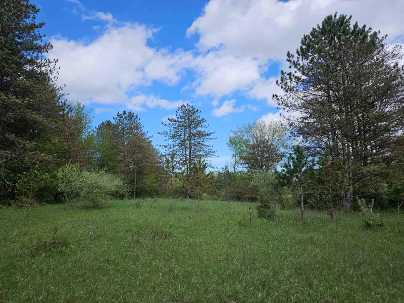 The north end of the property is a mix of pines, poplars and some thicker brushy spots. The middle is the place with the piney openings. The south end is deer central. Lots of thick bushy areas with a mix of pines, poplars, and some nice white birch. Just enough medium sized trees to hang the deer stands.