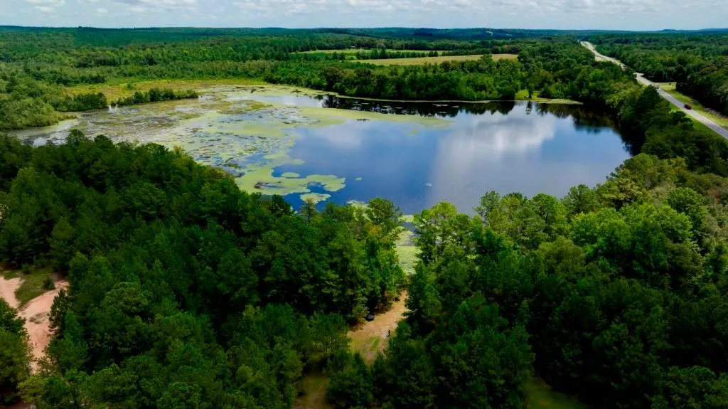 The 47 +/- acre lake is only shared by two landowners & has incredible fishing & duck hunting opportunities. Several Cabin and/or home sites can be found along the bank of the lake. There are two different wells just off the lake, along with a brick building at the entrance. There is an electronic gate just off of HWY 57.