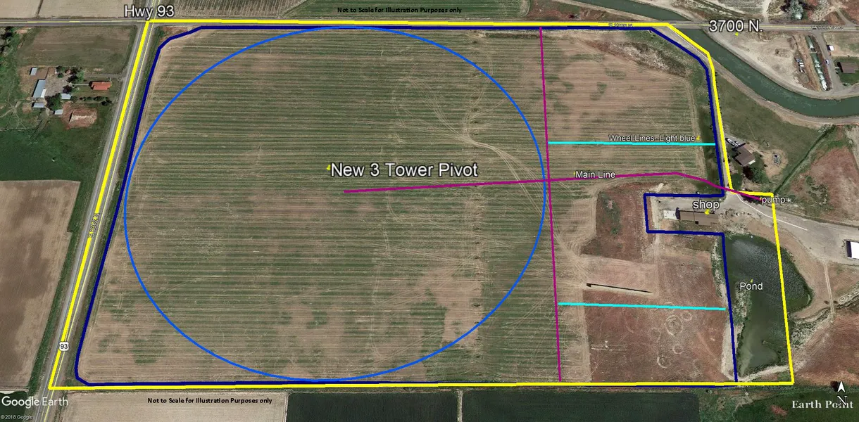 Zoned Rural Residential currently in lot line adjustment, new 3 tower pivot with main line, 1/4 mile of hwy 93 fronatge, Shop 3360+- SF. with concrete flooring in all 4 bays- and a studio apartment.