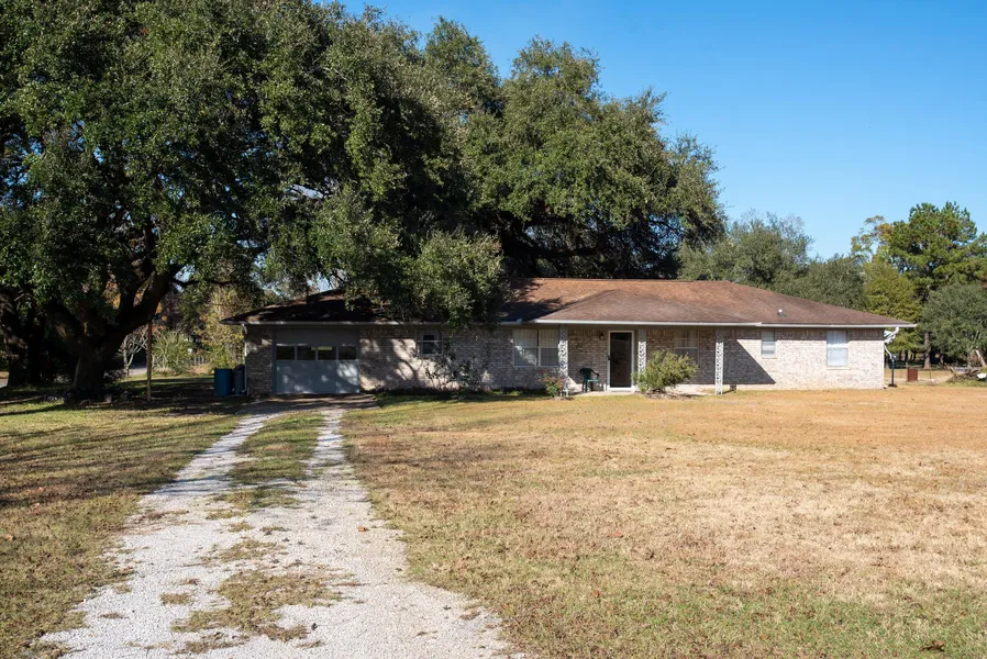 This beautiful 4.43 acre property presents an idyllic country setting featuring a neat four bedroom, two bath brick home set upon a grove of sprawling mature live oak trees, a separate detached garage/workshop building, and several acres of pretty, rolling pastures!