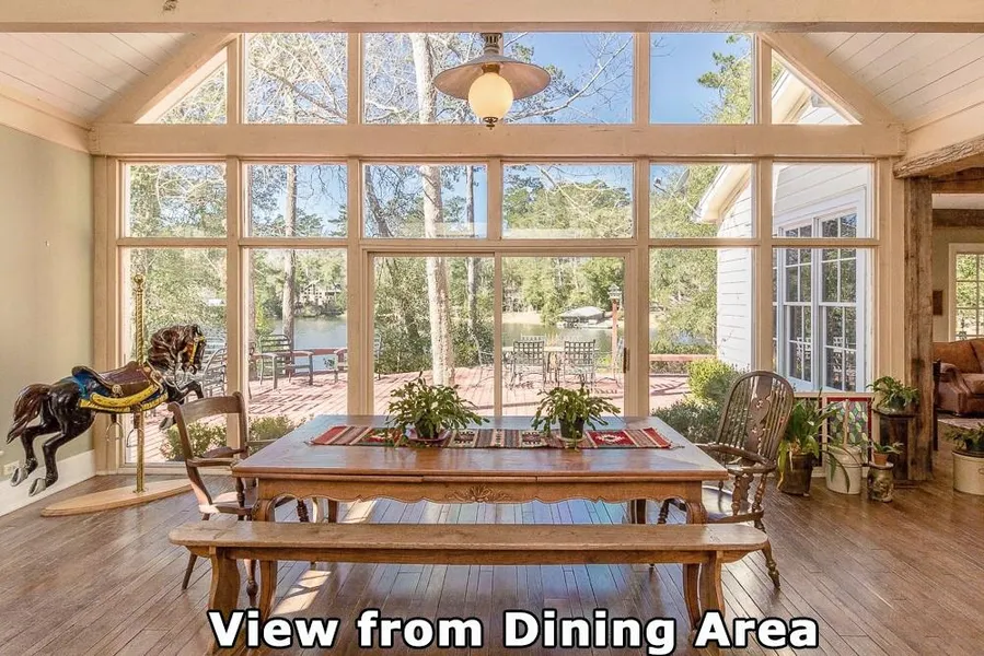 Adjacent to the kitchens open design is a large Great Room and Gathering Room with vaulted ceilings, two fireplaces and floor-to-ceiling windows viewing the 17-acre lake and grounds. Glorious sunshine pours into these areas highlighting the homes open spaciousness. Adjacent to the living and dining areas lies a warm inviting Study/Library/Bar and immediately outside are two patio areas, one bricked, the other with a wood deck featuring an outdoor kitchen with gorgeous views of the lake. From the patios, a very short walk takes you to the garden house and boathouse where great fishing is in store. Nine and ten pound largemouth bass have been caught in this lake. Attached to the home is a large 3-car garage.