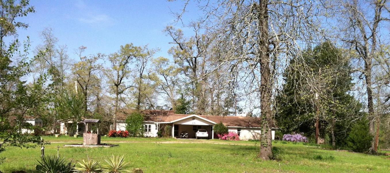 Wake up to this view every morning! Private and secluded! Lots of wildlife on this 76+/- acre tract, with approximately 40+/-acres of mixed timber. Plenty of water offered, with the 10 to 12 acre Electro Lake that is great for fishing which is fed by springs and Mangnus Branch. Front pasture offers another pond that supplies water to your grazing livestock. All kinds of barns and outbuildings, fenced garden spot, salt water above ground heated pool with wrap around deck. Two guest homes, one constructed with the wood harvested from the hurricane. The main home has been refurbished in 2003 decorated with solid maple floors, fabulous working kitchen with extras, vaulted ceilings, fireplace, and views to die for.