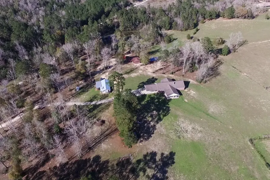 Located down a lonely country road just east of Woodville in the Pineywoods of East Texas, this attractive 62.57 acre well improved ranch property features a modern, comfortable three bedroom, two bath brick home, a second two bedroom, one bath guest home, beautiful rolling pastures and meadows, heavily wooded forests, a nice fishing lake, and various other useful ranch buildings.