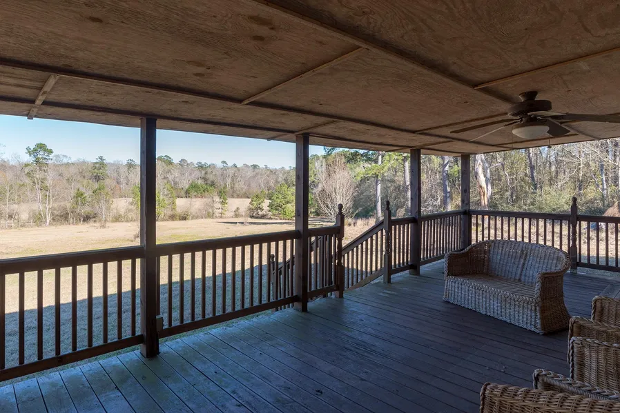 This beautiful pastoral property features several huge Live Oak trees around the homesite with large Pine, Beech, Cedar, Magnolia, and other native hardwood trees found throughout the fields, live water branch, and creek.