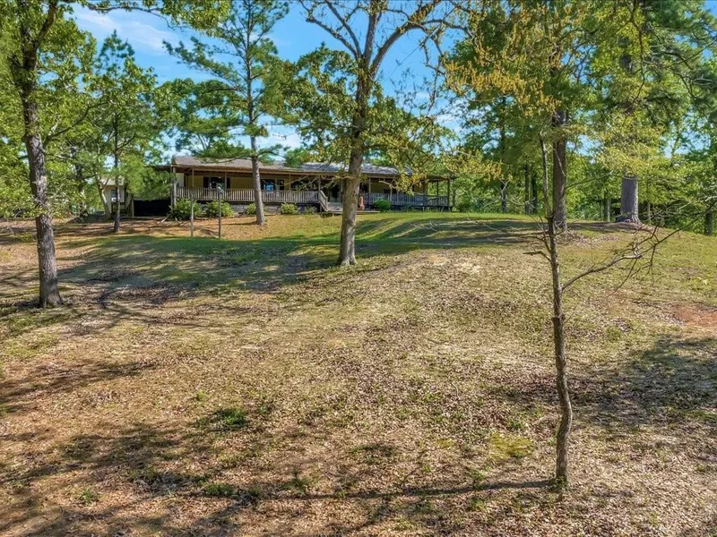 Outside a 12 foot wide covered deck wraps around half of the home and overlooks the tree-shaded hillside and two spring-fed ponds in the distance. Other improvements include wooden barn with an attached equipment shed/hay barn, two storage/workshop buildings, and a full-house Generac propane backup generator system. A second hill-top home site has septic with RV and manufactured home electrical hook-ups.