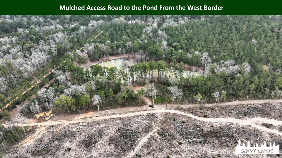 We hired a professional forestry mulching company to mulch and groom the shoreline of the pond for easy water access from all directions. Additionally, we also had the perimeter of the property mulched and groomed for easy access to all sides of this one-of-a-kind property!