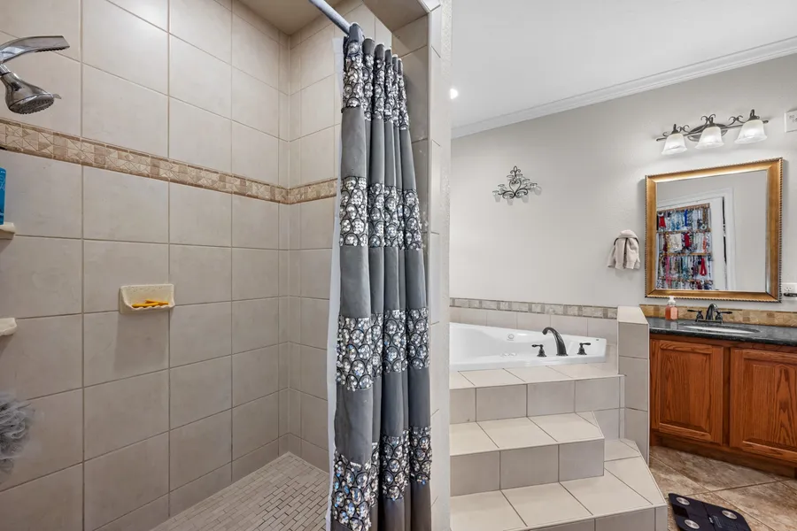 Set on 11 acres of open and wooded land, this 3-story ranch-style home features an expansive wrap-around porch, vaulted cathedral ceiling, and stone fireplace in the living area. The kitchen offers abundant cabinet storage, a walk-in pantry, and a large dining area with breakfast bar seating. The primary suite includes an ensuite bath and fireplace. Two laundry areas—upstairs and downstairs—for convenience. Tile floors on the main level and new 25-year Stainmaster carpet upstairs. Outdoor bar, above-ground salt-water pool, and hot tub for relaxation. Large metal workshop with power, 3-space carport, and multiple electric/water hookups for RVs or mobile homes. Wooded back area with deer feeders provides space for hunting and livestock.