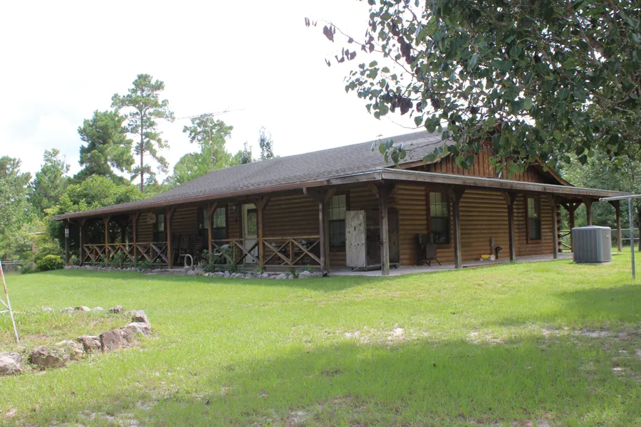 3 BEDROOM 2 BATH LOG HOME FEATURING OPEN CONCEPT LIVING, INSIDE UTILITY ROOM, BEAUTIFUL CABINETS WOOD BURNING FIREPLACE AND STANDBY GENERATOR. THERE IS A WORKSHOP/STORAGE SHED AND AN AIR CONDITIONED BUILDING THAT COULD BE USED FOR ANY HOBBY. SIT ON THE FRONT PORCH WITH YOUR MORNING COFFEE AND ENJOY THE SCENERY OF A BEAUTIFUL POND. THE HOME IS VERY SECLUDED AND IS SITUATED IN THE MIDDLE OF 24+/- ACRES OF 8-10 YEAR OLD PINE PLANTATION. CALL TODAY TO SEE THIS PROPERTY.
