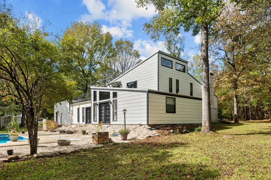 Unique Luxury and Peaceful Surroundings. This beautiful stone and wood structured contemporary home sits on 11.222+/-Acres of unrestricted property, the home is surrounded by densely wooded land with many walking trails encompassing the property. The home features 3 bedrooms and 3 full baths, with island style kitchen, formal dining, large living room with wood burning fireplace, and family room with wood burning stove, inside utility room, primary bed and bath located on the first floor, and 2 guest rooms on second floor with fabulous peaceful view from your private roof top balcony area of the unground pool. There is a wonderful guest unit with full bath located in the workshop, gazebo for relaxing in the shade by the pool, outdoor shower, fire-pit area with seating for guest, circle drive, and 2 car garage, chicken coop, and fenced in area for pets. If you are looking for privacy look no further!
