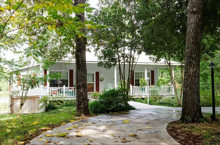 Adjacent to the rear of the main home and overlooking the lake is the 14'x28' Guest Cottage. The Cottage also features wood floors and ceilings, has a vaulted ceiling, small covered rear porch with view of lake, a full bath with tub/shower, and mini-kitchen with microwave and dishwasher.