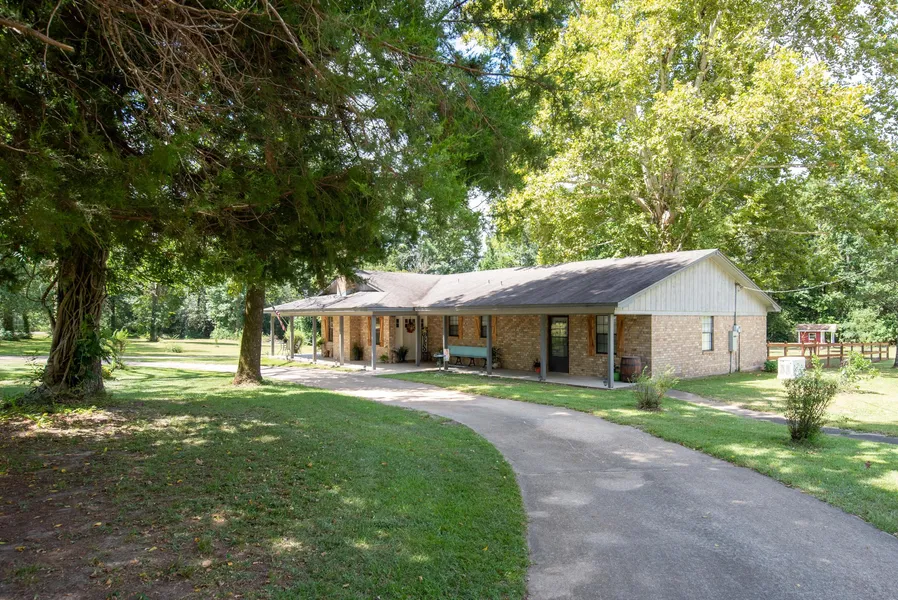 Located just outside of Woodville and set on 2.10 beautiful wooded, landscaped acres is this attractive and stylishly updated four bedroom, three bath brick home offering wrap-around covered porches, fenced back yard, detached workshop, propane backup generator, and other outbuildings.